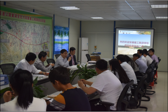 2016年4月15日,建工集團(tuán)技術(shù)專(zhuān)家組一行蒞臨北沿江高速公路巢無(wú)段路基04標(biāo)項(xiàng)目部,檢查我公司技術(shù)創(chuàng)新、工程創(chuàng)優(yōu)及技術(shù)管理工作開(kāi)展情況,公司總工辦副主任盧小鳳、北沿江高速巢無(wú)段04標(biāo)總工韓明洋分別代表公司總工辦和被抽查項(xiàng)目做詳細(xì)匯報(bào)。
