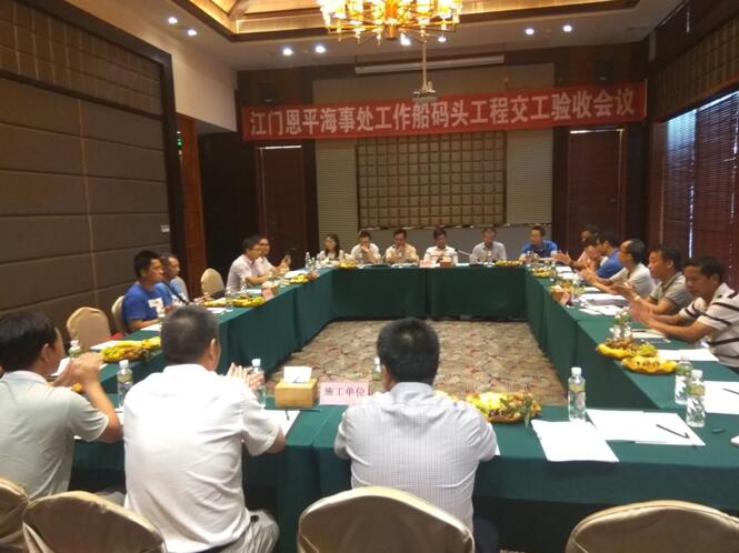 8月9日,由安徽路港公司承建的江門恩平海事處工作船碼頭工程順利通過交工驗收。江門海事局局長、黨組書記吳滿初、副局長紀力華出席交工驗收會議,安徽路港南方分公司負責人參加會議,并對施工情況作了簡要匯報。
