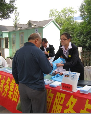 在城區中心地段鑒湖路設攤解答過往行人的咨詢、投訴,聽取意見建議,廣泛進行供排水法規等知識的宣傳。