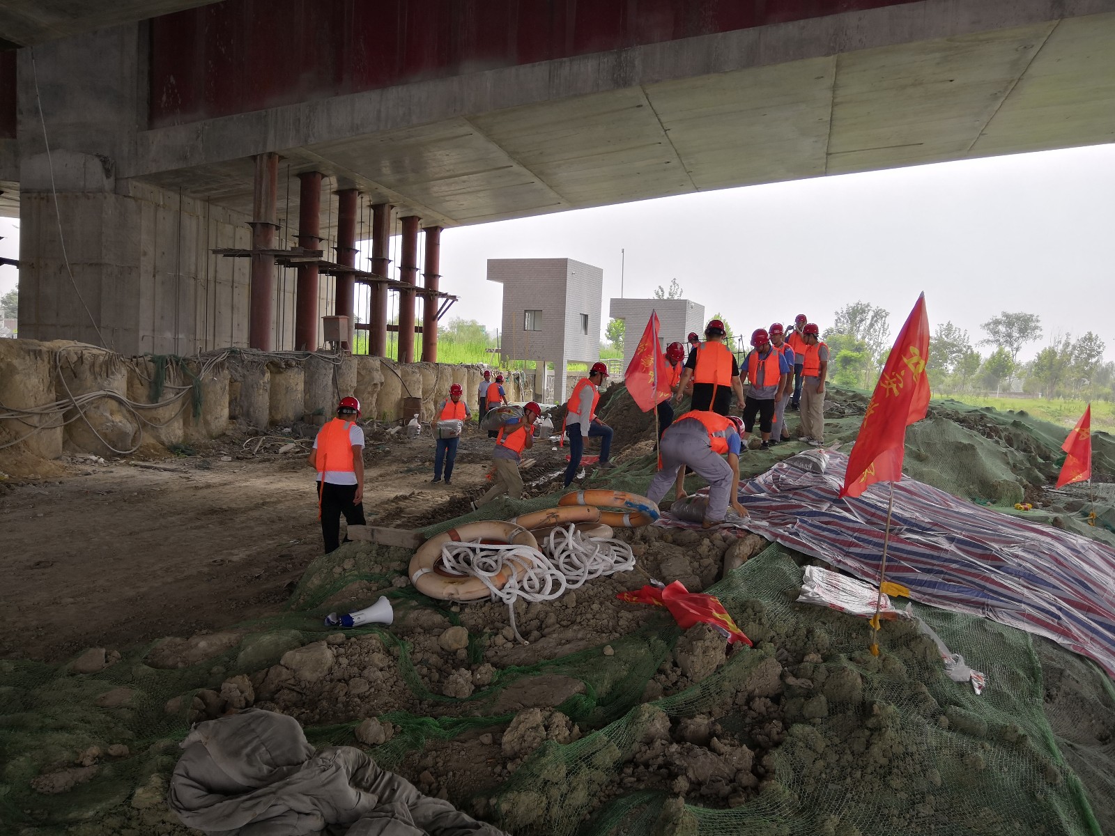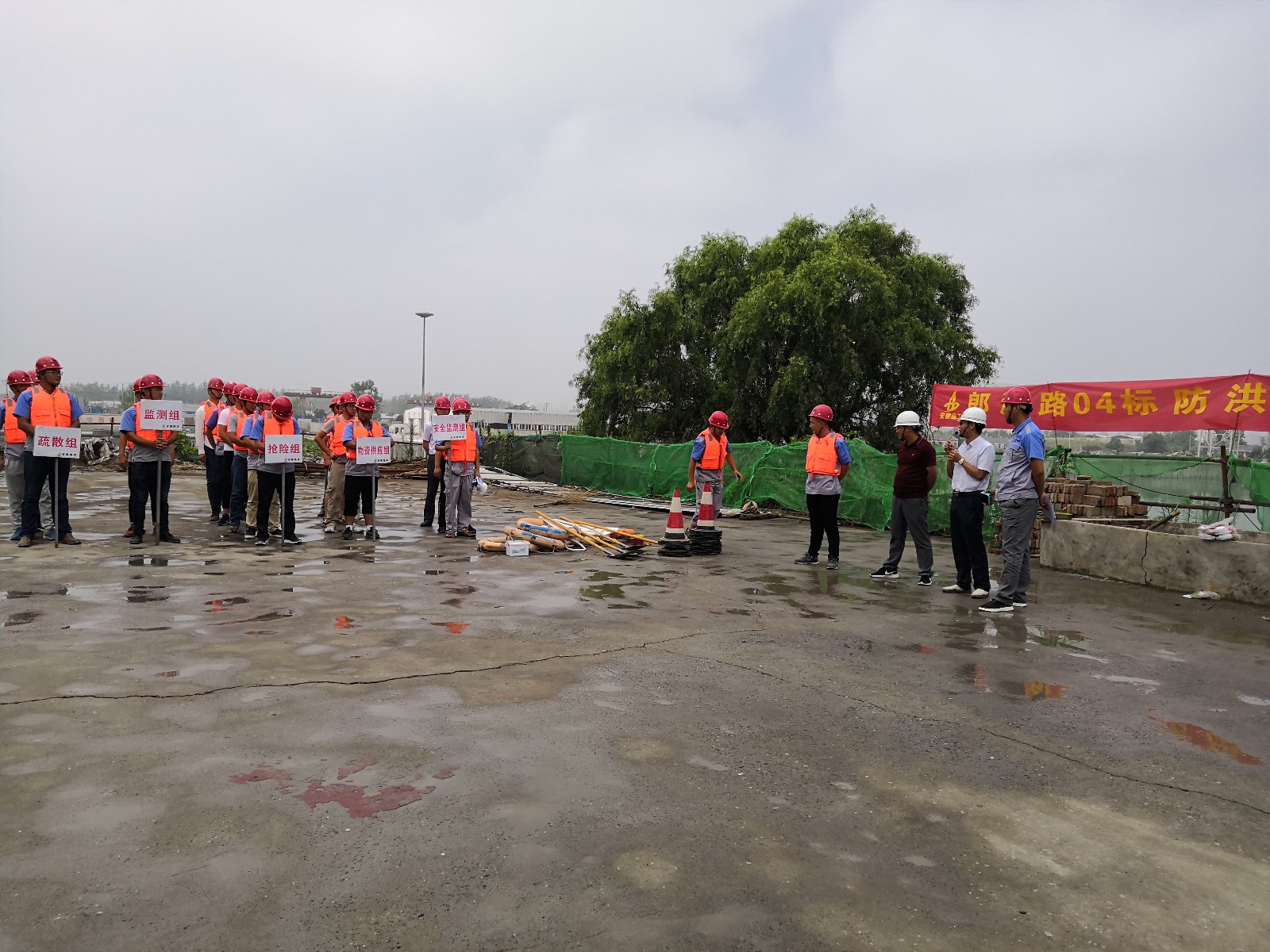 為牢固安全思想防線,有效應(yīng)對(duì)汛期可能發(fā)生的各類突發(fā)事件,提高項(xiàng)目部在汛期的安全保障能力,6月23日上午,郎溪路高架04標(biāo)項(xiàng)目部組織開展了防洪度汛應(yīng)急演練。